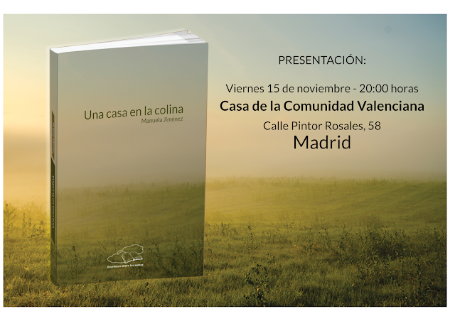 Manuela Jiménez Parrondo reflexiona sobre la invención literaria, su proceso y su culminación en su nueva novela: Una casa en la colina. El volumen, que acaba de ver la luz en Escritura entre las nubes, se presentará mañana viernes 15 de noviembre, a las 20:00 horas, en la Casa de la Comunidad Valenciana de Madrid (calle Pintor Rosales, 58). Previamente, a las 18:00 horas, se presentarán las novedades de la editorial a través de un encuentro de autores.